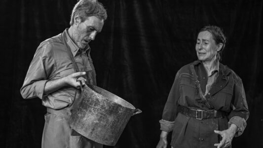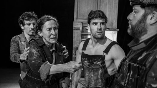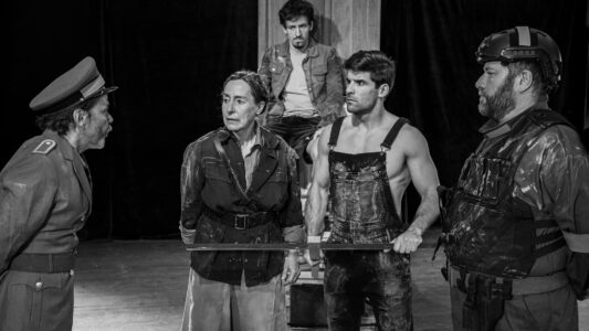 Considerada por muitos como a mais representativa obra do teatro épico de Brecht, a peça Mãe Coragem foi escrita em 1939, durante o exílio do dramaturgo — que, fugindo ao nazismo, deixou a Alemanha nas vésperas do início da II Guerra Mundial. O texto consiste numa crítica à guerra e ao conformismo, bem como numa radiografia ao conflito, demasiado humano, entre a moral e a necessidade de sobrevivência. Anna Fierling (a ‘Mãe Coragem’) é uma vendedora ambulante que atravessa os campos onde se trava a Guerra dos Trinta Anos (1618-1648), arrastando uma carroça de mercadorias na companhia dos seus três filhos. Ao mesmo tempo que os tenta proteger do conflito armado, para sobreviver Anna faz algumas escolhas eticamente duvidosas, sem se abster de entrar em conluios e estabelecer certos negócios desonestos — pondo em risco, inclusive, a vida da sua família. No final, o resultado das suas acções acaba por revelar-se bem amargo.